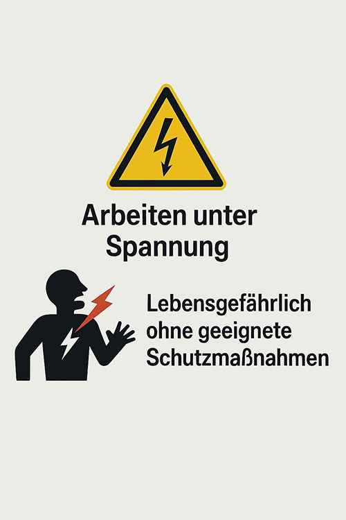 Arbeiten an unter Spannung stehenden Anlagen sind lebensgefährlich und nur in absoluten Ausnahmefällen erlaubt. Stromunfälle beim Öffnen von Schaltschränken oder bei Wartungsarbeiten zählen zu den schwersten Ereignissen im Elektrobereich.